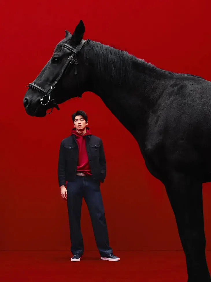 Fronting the campaign is Wang Shun, whose athletic discipline and competitive intensity shape the visual language of the release. The Year of the Horse has long been associated with momentum and endurance, and Wang Shun’s presence reinforces those ideas through movement and physical control. The campaign imagery places his form alongside motifs of forged gold and galloping horses, creating a sharp dialogue between strength, craft, and motion.
