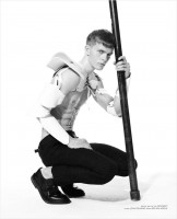 Models Sven Stoop, JB Beovardi, Ty Gurfein posing in pieces from the Autumn Winter 2013 collection by up and coming designer Julian Zigerli. Story styled by the designer was photographed by Amanda Camenisch.