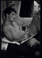 Model Erik Andersson posing for 5351 POUR LES HOMMES visual book elegantly captured by photographer Kenichi Muramatsu with styling by Tadashi Mochizuki.