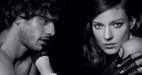 Conceived as portraits, the images play on chromatic counterpoints between the clothing and the backgrounds, suggesting continuity, then contrast through the device of alternating between a dense grey and a pale lime green. Models Marikka Juhler and George Alsford are captured in relaxed poses. The subtle narrative tension creates a new kind of balance, which is emphasised by the powerful nature of the images. – from Giorgio Armani