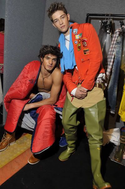 Marlon Teixeira and Francisco Lachowski backstage at DSquared2