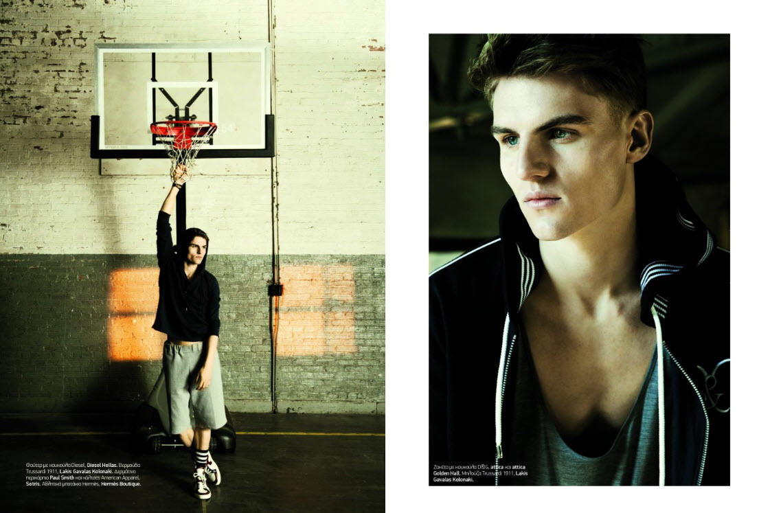 Reid Prebenda is caught on a CAMPUS for a shoot by fashion photographer Dean Isidro for Greek issue of L'Officiel Hommes magazine. View more after the jump: