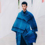 The transformation theme was incorporated into each piece, as everyday items underwent an evolution into their more polished counterparts. Men’s pea coats transformed into pristine, double-breasted tuxedos, while short puffer parkas became luxurious faux-pony anoraks. Women’s evening wear dominated with plunging necklines and an emphasis on sexiness and skin, showcasing the brand’s flair for drama. By night, men’s wear received a “glow up” with transparent chiffon shirts, sparkling velvet, and glossy python leather.