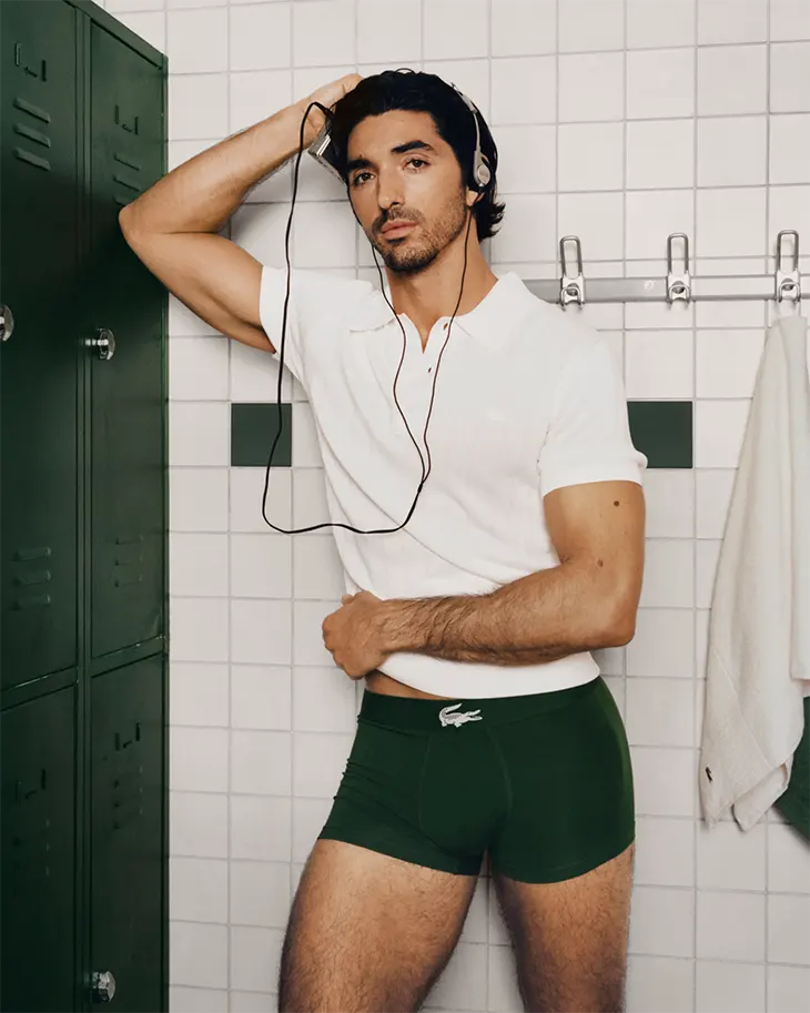 Lacoste introduces this campaign as a continuation of a collaboration that began in January 2025. From the outset, the partnership carried the promise of longevity, and the new underwear campaign builds on that foundation. For the second consecutive year, Zakhar Perez lends his acting experience to the project, allowing performance and personality to guide the imagery.
