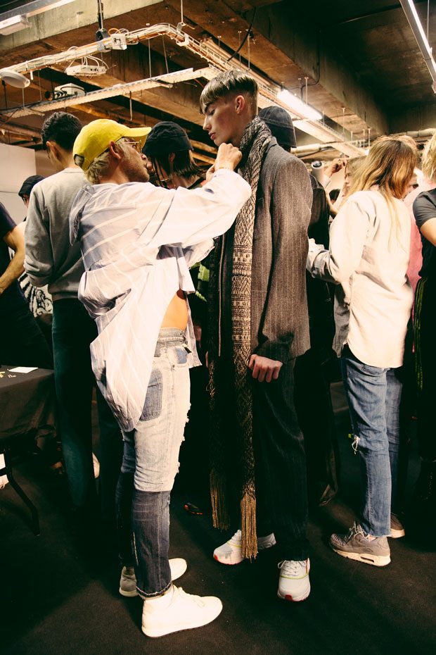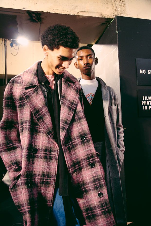 Backstage moments at the TOPMAN Design Autumn Winter 2017 collection runway show taking place during the ongoing London Collections: Men. In charge of photography exclusively for MMSCENE/D’SCENE was photographer Thang LV.