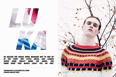 Promising new face on the scene model Luka Badnjar in a shoot by Alessandro Dal Buoni covering the 4th issue of mens fashion magazine Hero.