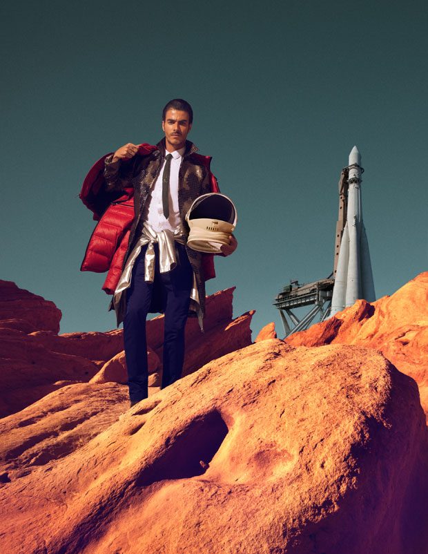 Brazilian top model Gui Fedrizzi at DT Model Management takes the pages of our MMSCENE Magazine‘s 20th edition with The Final Frontier story captured by fashion photographers F&G. Grooming is work of beauty artist Miho Suzuki using Oribe.