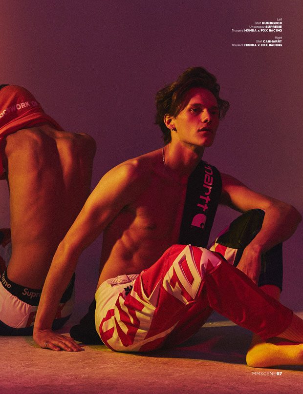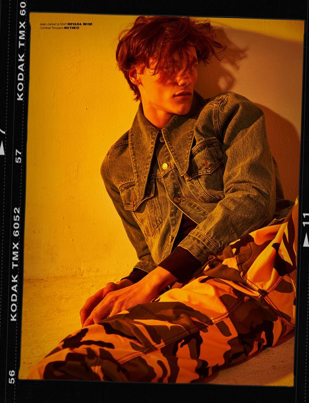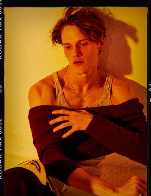 Another one of my favourite shoots was for At Large Magazine, shot by Carter Smith and styled by Paul Sinclaire. We went up to Maine to Carter Smith’s property where we shot for a few days and all stayed in cottages. The cottages were so cozy, all located on the most beautiful ocean edge cliffs in a quiet fishing town. We shot in and around the cliffs, in the cabins, and on frozen rivers while I played the role as the little brother to Jesse Shannon’s character. I had a great time shooting those stories.