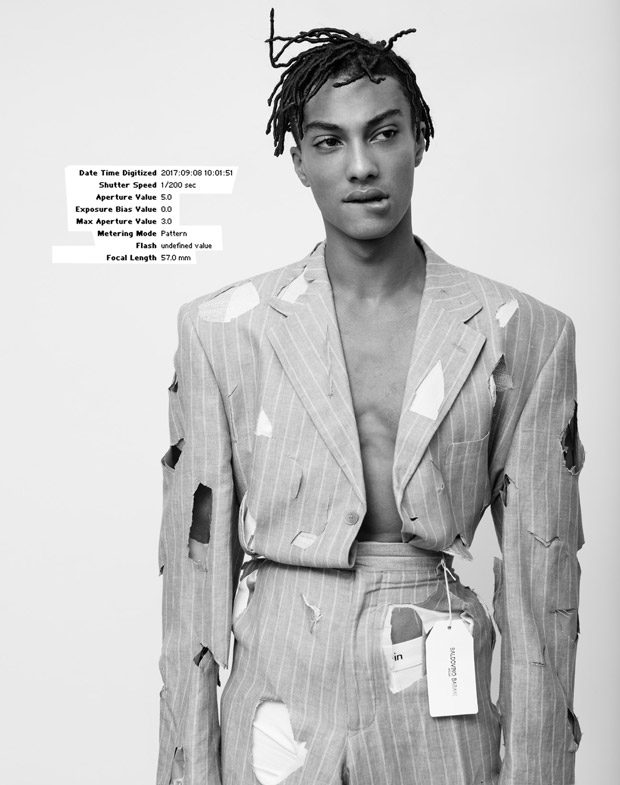 Studio Photo story captured by fashion photographer Baldovino Barani for the latest edition of Factory Fanzine features the handsome Onnys Aho. For the session inspired by the work of photographer Malick Sidibé, Onnys (Elite Paris/London, Sight Management Studio) was styled by Baldovino in selected looks from Balenciaga, Gucci, Calvin Klein, Vetements, Marni and Rufskin.