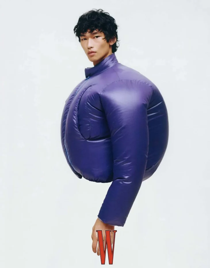 Photographed by Edwin Zhang and styled by Zipeng Li, Ruien Bai moves seamlessly through a series of sculptural, surreal looks that reference the absurdity, humor, and vulnerability found in Chow’s work. Each image channels a different facet of the director’s legacy—whether it’s the hopeful defiance of an aspiring actor, the fantastical chaos of martial arts legends, or the simple, heartfelt dreams that define everyday life. The set design by Doll King, Chen, and Shao Zi, along with makeup by Pan and casting by Tuanz, creates a world where the line between comedy and drama is both playful and profound.