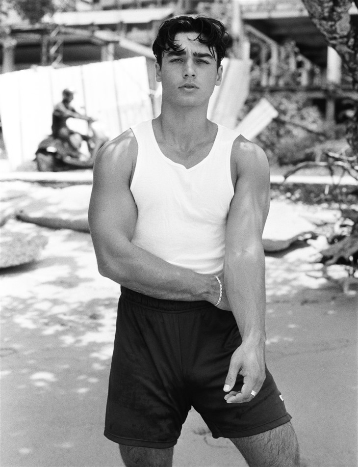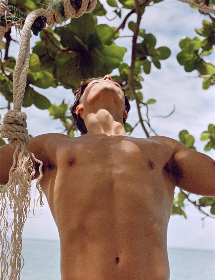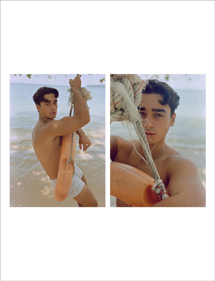 The handsome Daniel Blackburn stars in MMSCENE PORTRAITS Ticket to Paradise exclusive session captured and styled by Jury Krajcik.