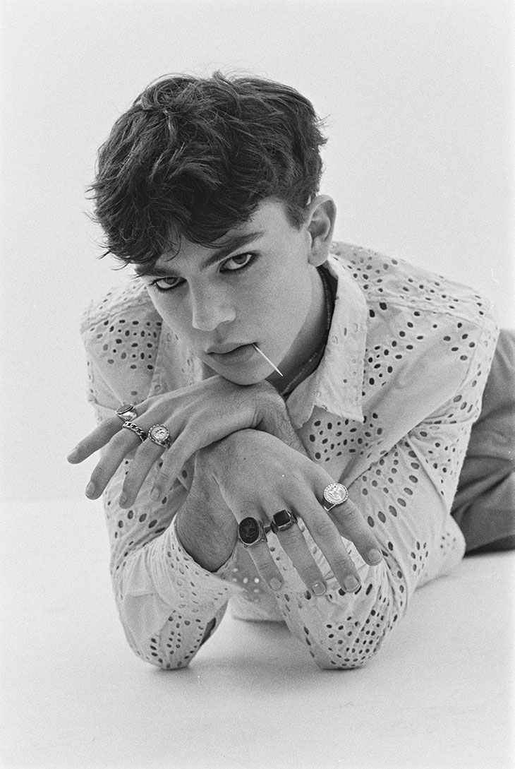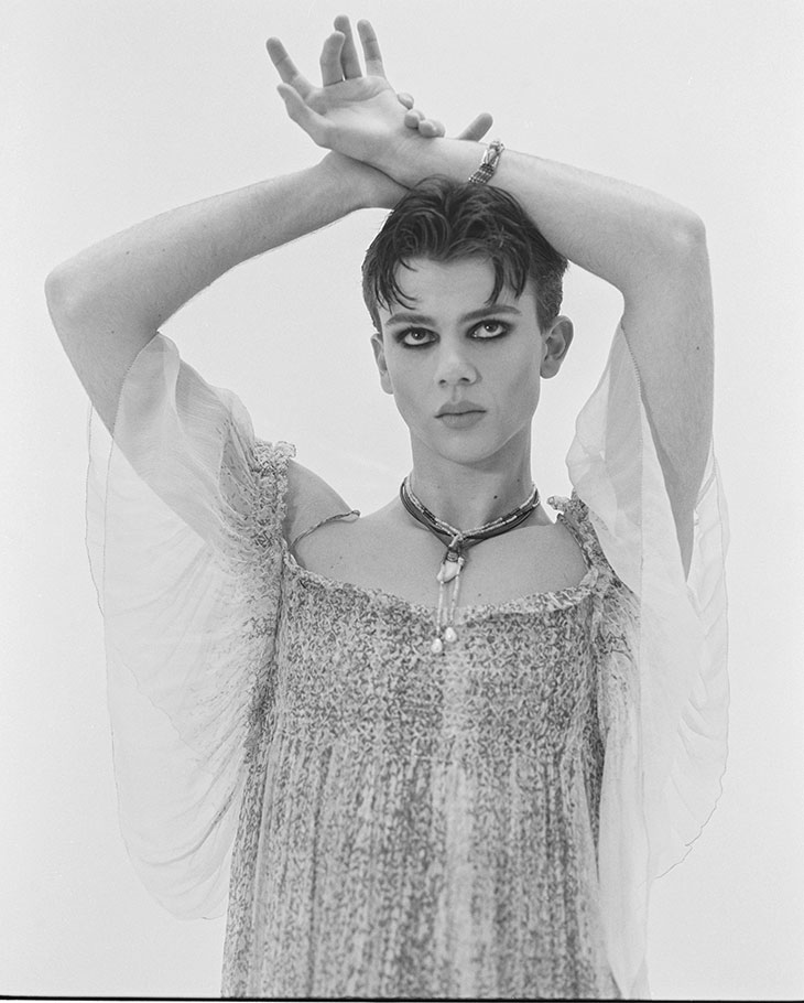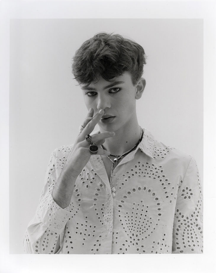 For this session, Blu is wearing selected pieces from Archive Ozwald Boateng, Beyond Retro, Retro Vintage, Reserved, Uniqlo, G.H.Bass, Rokit Vintage, Archive Repetto, Pantherella, Archive Yves Saint Laurent, Archive Dunhill, Archive Gieves & Hawkes, Archive Burberry, and WornWell Vintage.