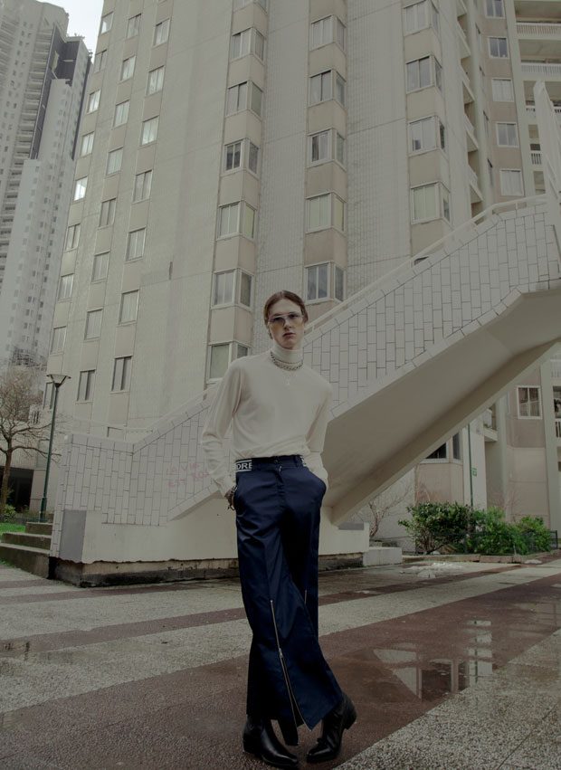 For the story Maryan is wearing selected pieces from Acne Studios, Faith Connexion, Vivienne Westwood, Ly Adams, Andrea Crews.