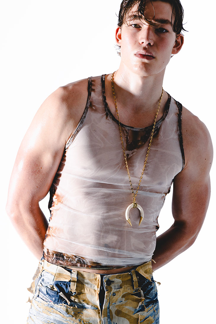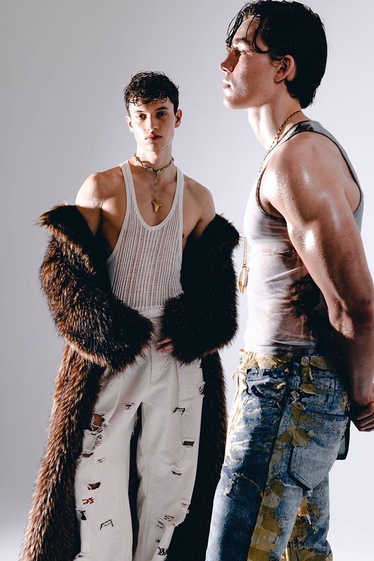 For this session, Nicolas and Jaden are wearing selected pieces from Isabel Marant, Roberto Cavalli, Acne Studio, Diesel, Agape’ Studio, Helen Yarmak, Versace, Persol, Dsquared2, Gucci, Laneus, Alabama Muse, Na-kd, Cult, Bysarachristie, Dolce&Gabbana, Mordecai, and Antonio Marras.