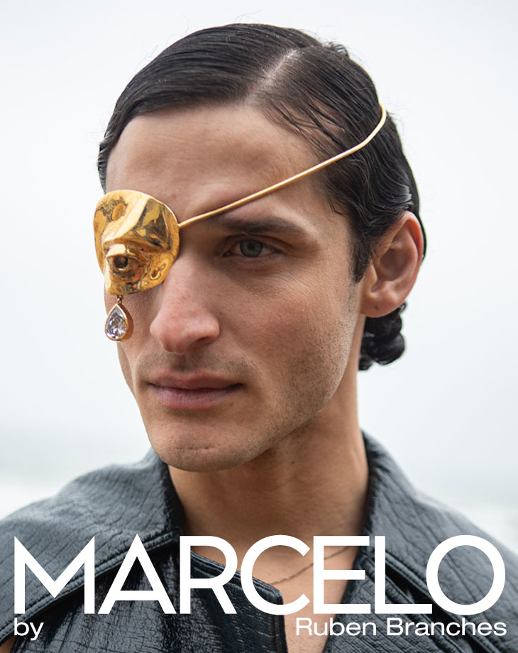 For this session, Marcelo is wearing selected pieces from Donna Noir, Branches Costume Made, Hurricane Lab, Santana Pires, Judy Sanderson, Ana Vasconcelos, and Katty Xiomara.