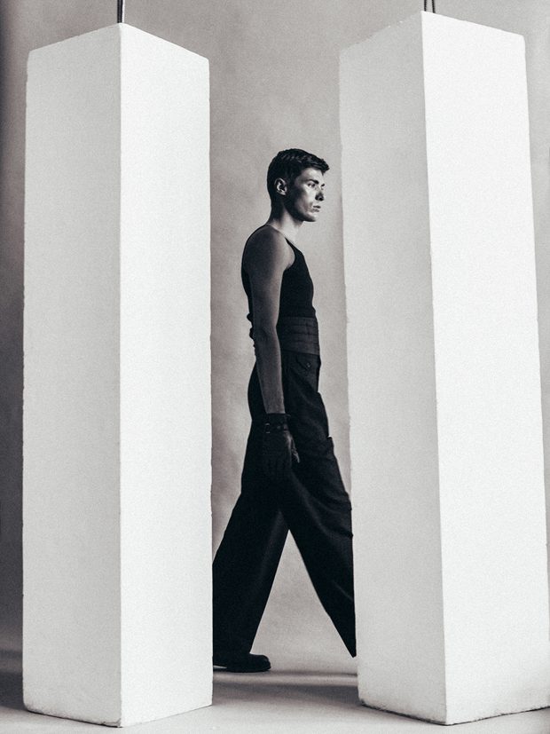 For the session Yaroslav is wearing selected pieces from the likes of Ralph Lauren, Christophe Lemaire, Hugo Boss, Rick Owens, to name a few.