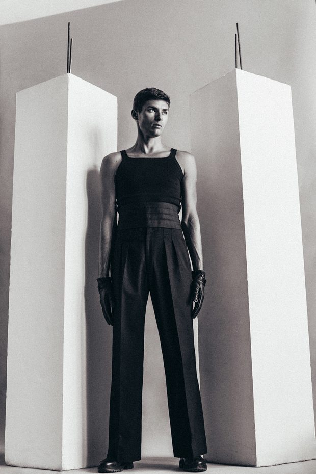 For the session Yaroslav is wearing selected pieces from the likes of Ralph Lauren, Christophe Lemaire, Hugo Boss, Rick Owens, to name a few.
