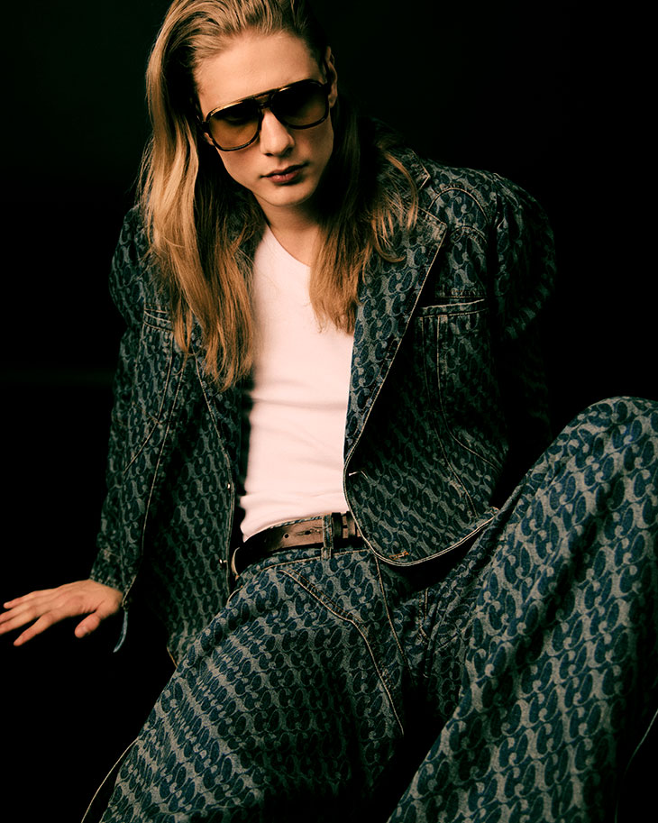 For the latest edition of MMSCENE STYLE STORIES titled “Soul Rock Back,” model Thomas Schmidt from Next Management Milan was photographed by Paola Ledderucci. Jacopo Venturi did creative direction and styling, Monica Crosta took care of hair and makeup, and Caterina Magni provided fashion assistance.
