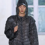 The collection includes coats with silk linings, exquisitely tailored wool trench coats, and reversible wool mohair slacks. The deliberate act of wearing certain garments inside-out reflects a personal interpretation and lends an air of individuality. Standout outerwear, constructed blousons, and hoodies made from elevated tropical wool introduce an unconventional yet elegant functionality, juxtaposing voluminous and spongy effects.