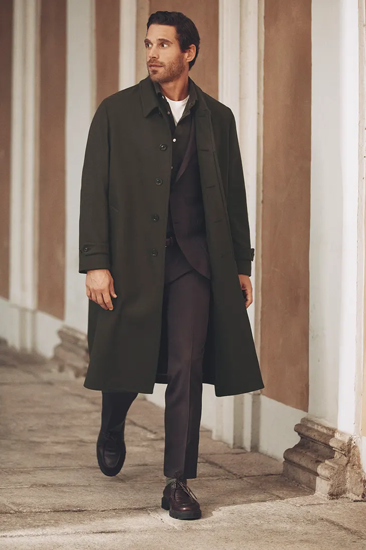 Soft tailoring remains the backbone of the season, with new jacket styles signaling a measured evolution. The Manin introduces a double-breasted construction with a contemporary profile. The Treves draws from safari jackets, delivering utility through structure rather than added detail. The Galleria reworks the historic Gassmann into a more fluid form, aligning familiar shapes with updated proportions.