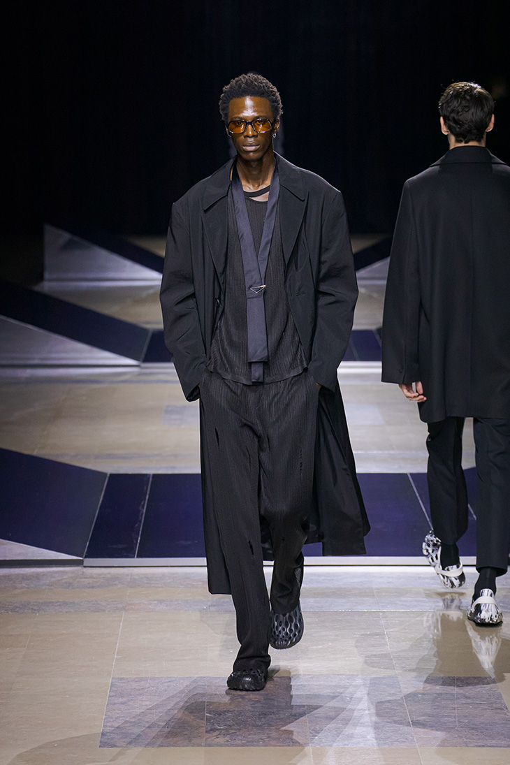 Fashion brand LGN LOUIS GABRIEL NOUCHI presented their Fall Winter 2022.23 Collection, on January 22nd, as part of the recently finished Paris Fashion Week. For this season, brand was inspired by Charles Baudelaire’ book Artificial Paradises. The collection mixes nightclubs atmosphere of warmth and sensuality with melancholic poetry, and brings a variation of tuxedo jackets, dressing gowns and bodysuits. The brand also launched swimwear for the first time. For the season, LGN collaborated with Herme?s Pontet glasses and the outdoor shoes brand Merrell.