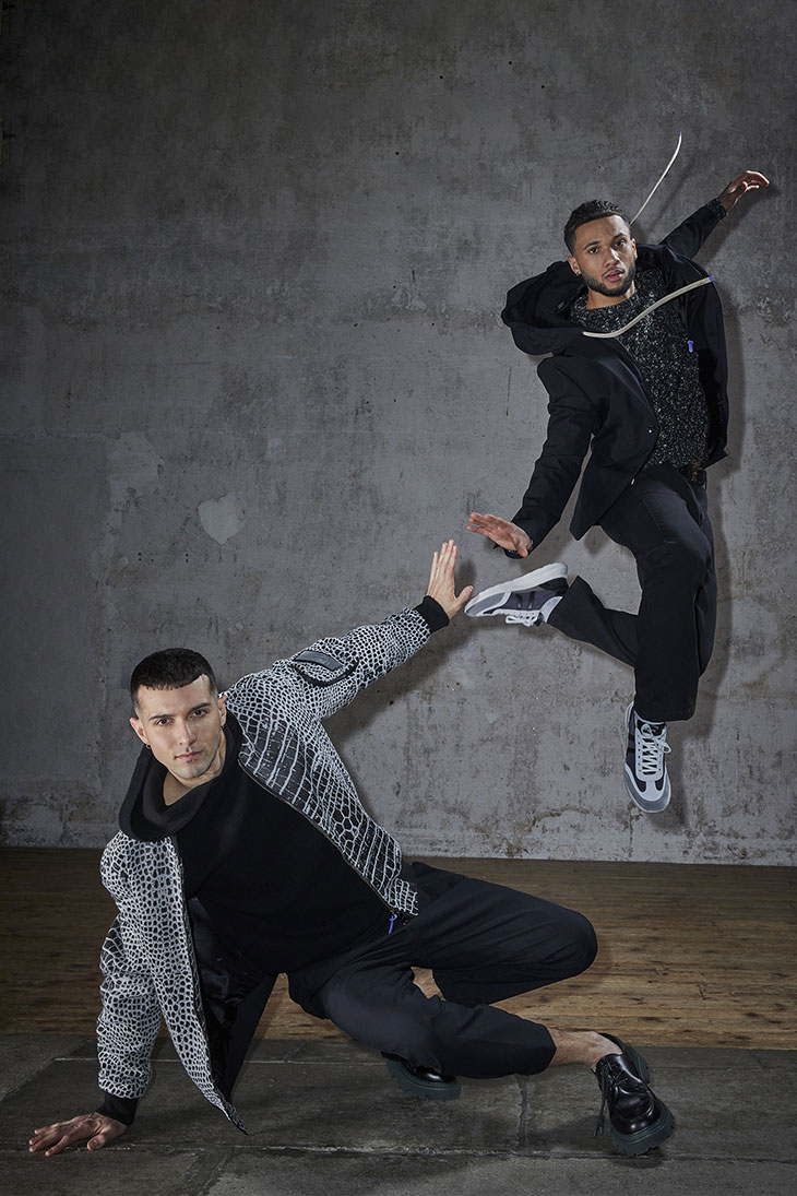 Material selection plays a big role in this collection, juxtaposing raw, rustic textures with traditional menswear fabrics. From 3D textures to engineered cables, the collection includes a diverse range of tactile experiences. The color palette of the Fall-Winter 2024 collection is a spectrum of grey hues, complemented by warm tones of gingerbread and a selection of natural and muted shades such as ivory, cedar, ebony, clay, and mushroom beige. Accents of purples, curcuma yellow, mulberry, and nocturnal hues add depth to the overall aesthetic. In addition to the apparel, the footwear lineup for FW24 presents us with leather derbies and nubuck boots, as well as colorful sneakers.