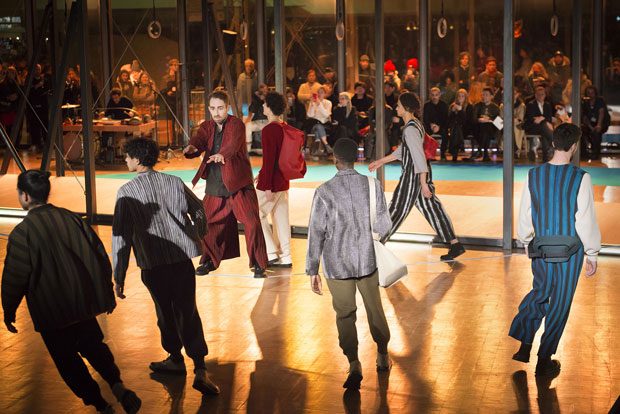 Discover Homme Plissé Issey Miyake Fall Winter 2019.20 menswear collection, presented 17th of January, during the recently finished Paris Fashion Week. Held at Centre Pompidou in Paris, the event Playground was planned and produced by renowned director and choreographer Daniel Ezralow.
