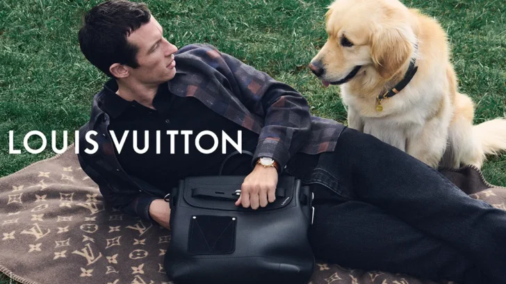 A pet accessory capsule introduces an unexpected note of humor and warmth. British breeds such as the Welsh Corgi, English Cocker Spaniel, and Border Collie appear in the campaign’s portraits, wearing LV Monogram leashes, collars, and harnesses. The collection extends to puffer jackets, fleece throws, and classic travel carriers including the Speedy Pet Trunk, Malle Chien, Kennel Trunk, Neverfull for pets, Sac Chien, Dog Bed Trunk, and Pet Backpack.