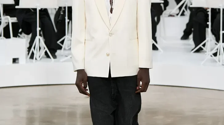 Maison Margiela’s Spring Summer 2026 show advanced ideas of construction and material play while revisiting archive signatures. From tuxedo tailoring in denim to plasticised jackets, the presentation treated familiar garments as active ground for reinvention.