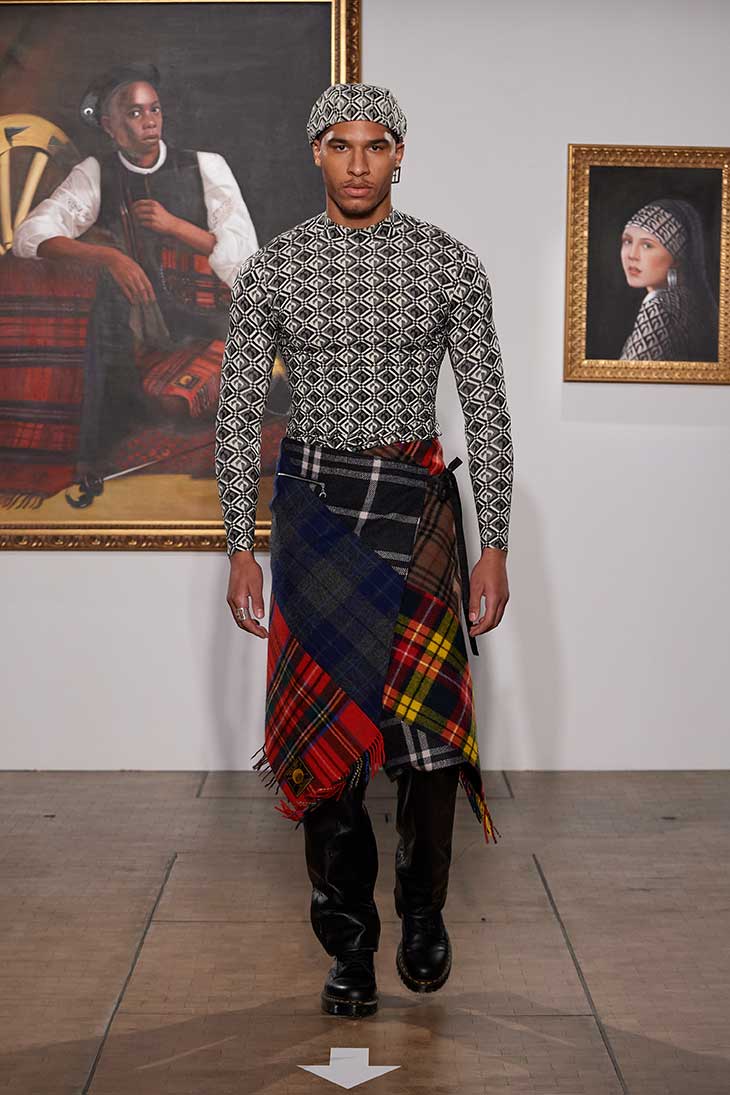 French fashion designer MARINE SERRE presented the Fall Winter 2022.23 Collection with a lookbook and exhibition held at Lafayette Anticipations space, during the ongoing Paris Fashion Week. The Hard Drive collection compresses brand’s ethos. The core materials and savoir-faire of the House are disclosed through an exhibition that pushes fashion boundaries, questions outdated automatisms and puts human action at the center of transformation. For this season, Serre brings punk attitude with mix of tartan and houndstooth, chokers and vibrant colors. The brand emphasizes their upcycling work with last season’s grunge t-shirts patchworked together into dresses, pants and tees. Marine Serre’s Red Line returns with a larger offer of unique visionary designs, rare treasures of artisanal regenerative techniques.