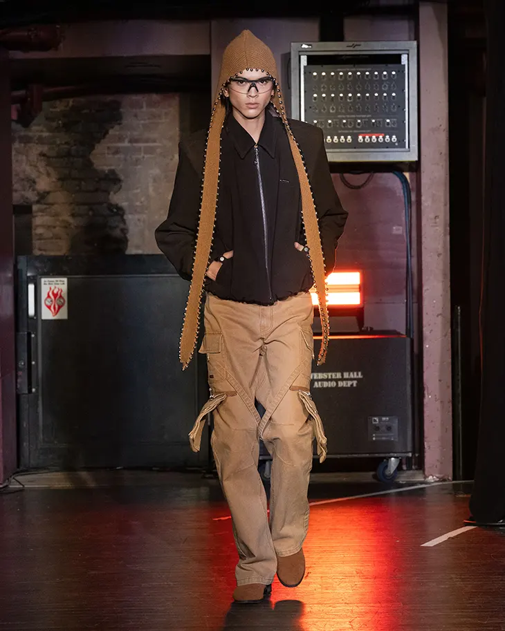Presented at Webster Hall, Private Policy Fall/Winter 2026 arrived around Lunar New Year, positioning the collection within a moment of renewal and generational reflection. The brand turns its focus toward the histories of Asian labor in America and examines how those histories continue to structure contemporary experience. The runway establishes a dialogue between past and present, grounding fashion in social memory.