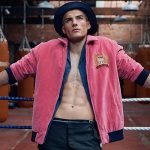 “For Rocha’s menswear debut, there are riffs on her classics; a reworked trench, with pearl embellishments on the collar, a rounded summer parka, Aran knits and cardigans, classic wool suiting and a vibrant checked blazer with matching drawstring trousers. There are shirting, hoodies and t-shirts in colour pallets of white, pink and black as well as some printed with photographs by Jacob Lillis, a long-term collaborator of Rocha’s.” – from H&M