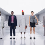 The SANKUANZ Spring Summer 2024 collection draws inspiration from the multifaceted Giantess, a mythical figure symbolizing destruction and creation, chaos and order, and death and rebirth. Blurring gender boundaries, the collection merges street style and high fashion with a sense of plurality and depth.