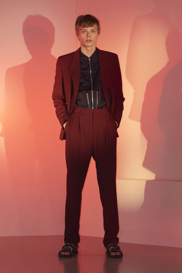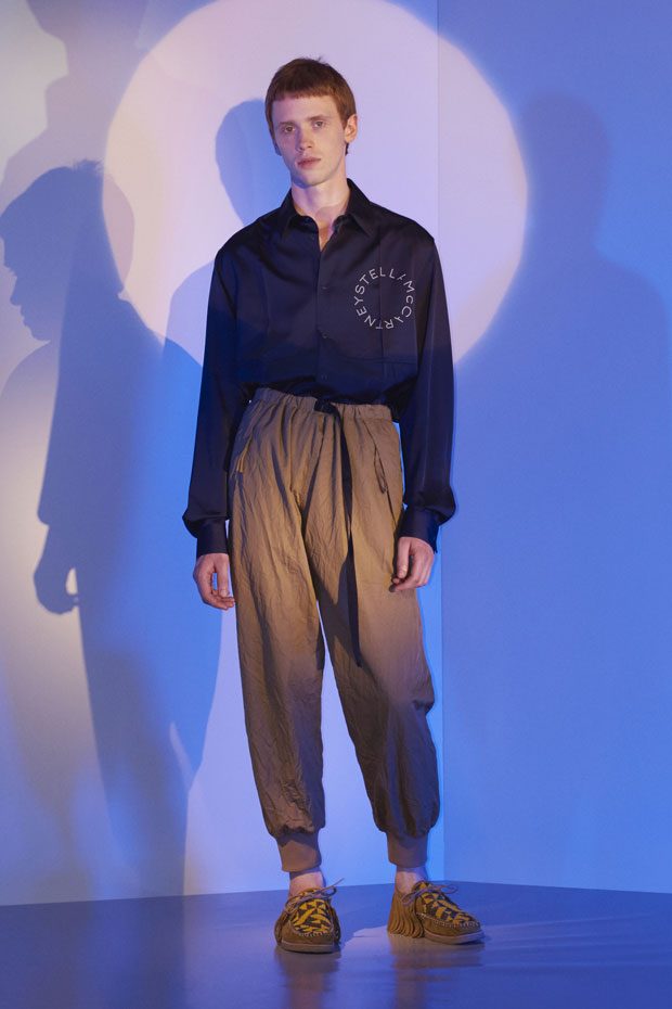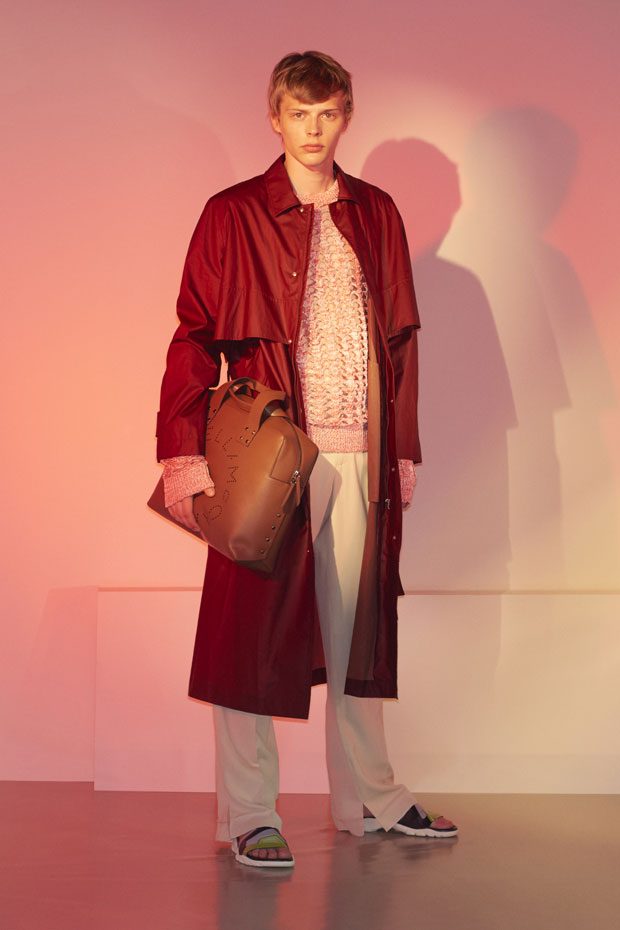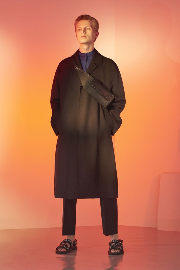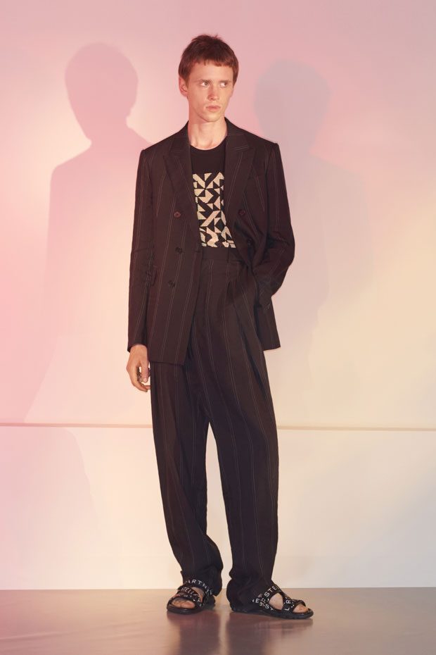 Discover Stella McCartney Spring Summer 2018 Menswear Collection Celebrating the spirit of the season with escapism, positivity, romance and freedom, traditional wardrobe transitions into summer with graphic detailing, contrasting texture and effortless silhouettes.