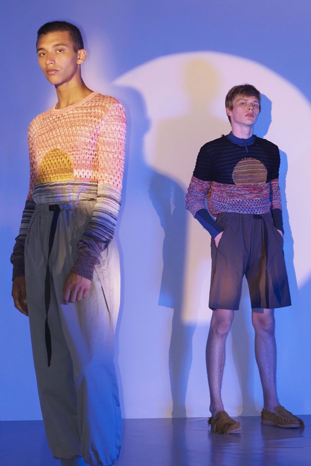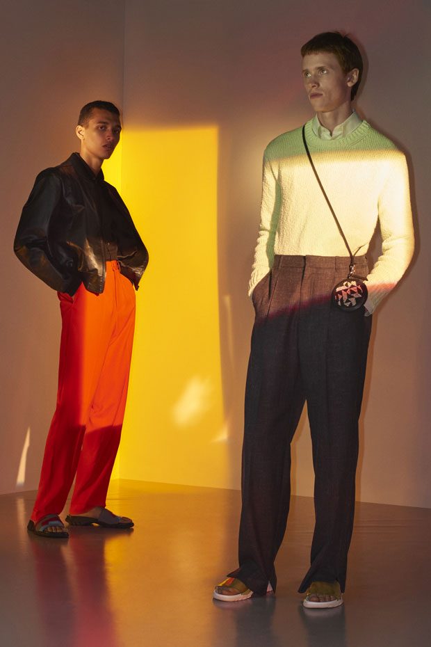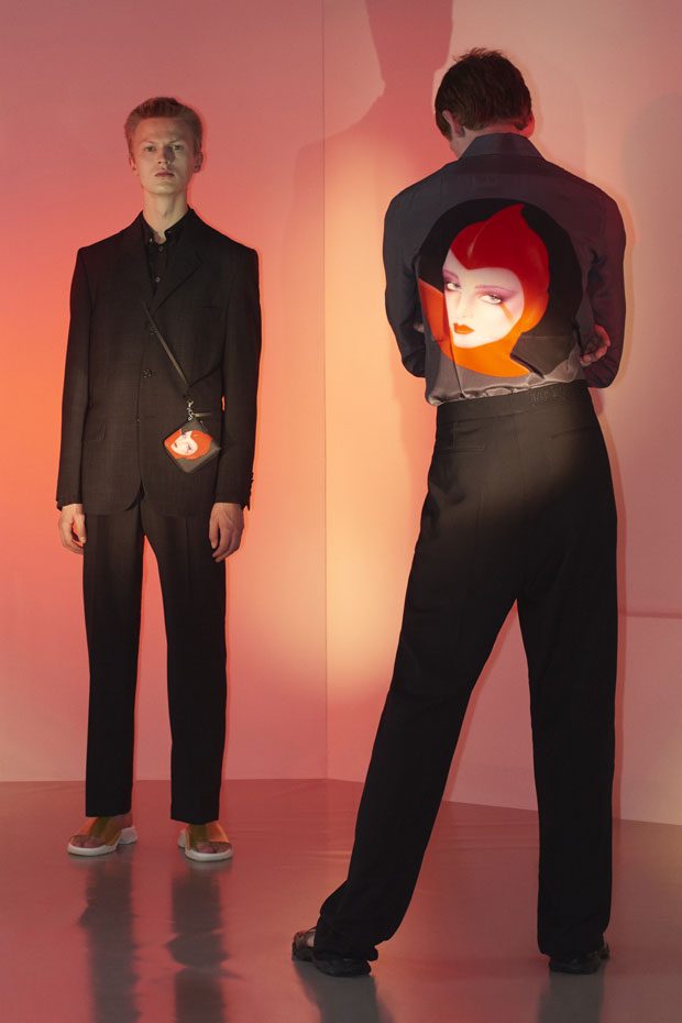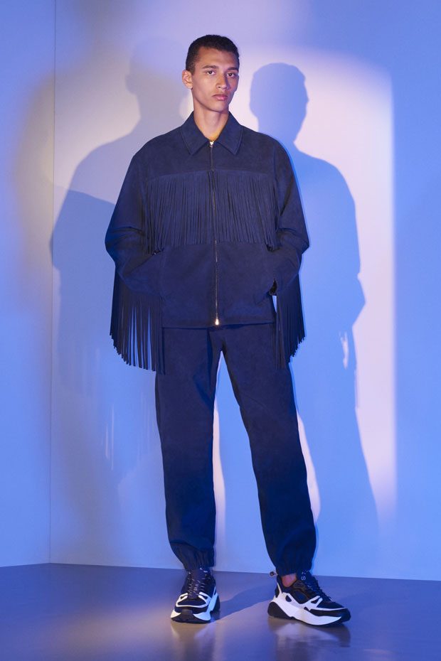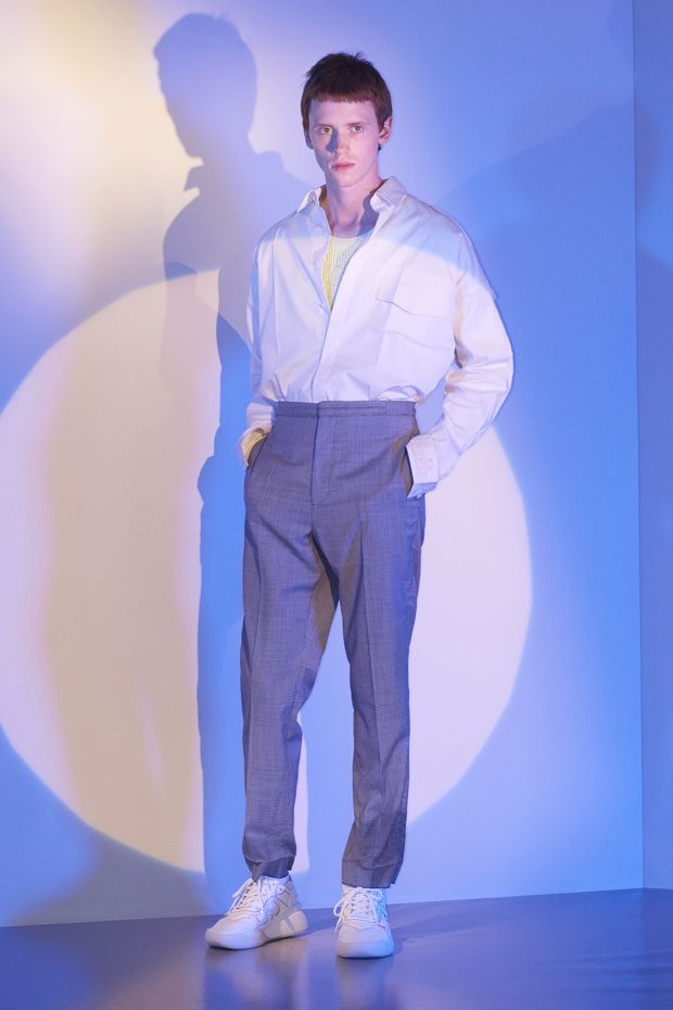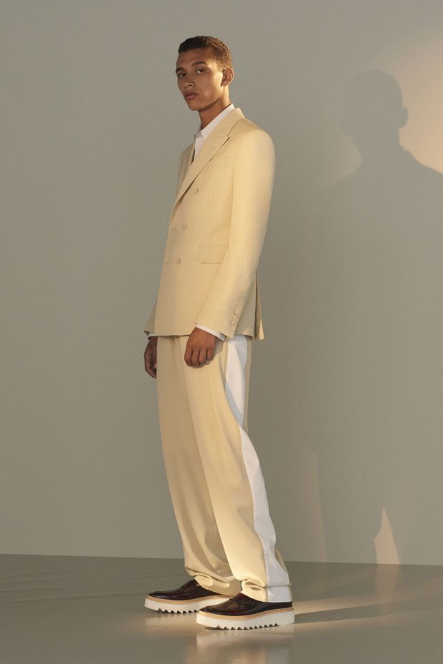 Discover Stella McCartney Spring Summer 2018 Menswear Collection Celebrating the spirit of the season with escapism, positivity, romance and freedom, traditional wardrobe transitions into summer with graphic detailing, contrasting texture and effortless silhouettes.