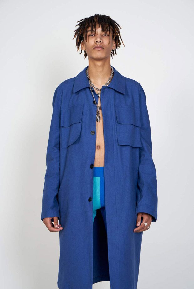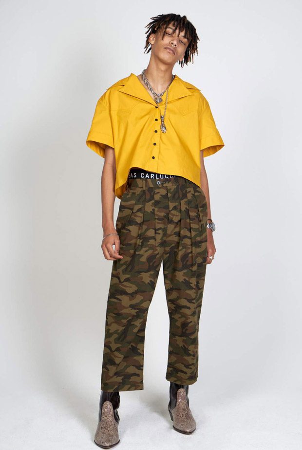 “STRATEAS CARLUCCI present ESTUARY for SS19 Men’s, exploring the concept of static gender roles. Drawn to the idea of peeking behind common stereotypes, Strateas Carlucci investigates the work of French Photographer, Writer, and Political Activist Claude Cahun – born Lucy Renee Mathilde Schwob in 1894. Cahun was forward thinking of her work and constantly challenged gender roles in society, which of the time, were more defined and rigid. Self-described as a ‘Neuter’, Cahun’s work explored the complexities of our human selves through sensual self-portraits in a variety of costumes and personas.