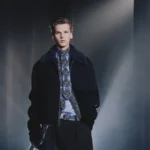 The collection centered around classic tailoring infused with poetic and progressive elements. Traditional dinner suits were transformed with tonal fabric flower formations, adding an air of ceremony and romance to coats, shirting, and knitwear. These floral details disrupted rigid lines while introducing artisanal textures, showcasing elegance as both a structured and fluid concept. Heritage outerwear—greatcoats, trench coats, and Crombie coats—was elevated with bright shearling lapels, creating striking contrasts that empowered both silhouette and spirit.