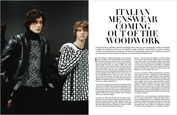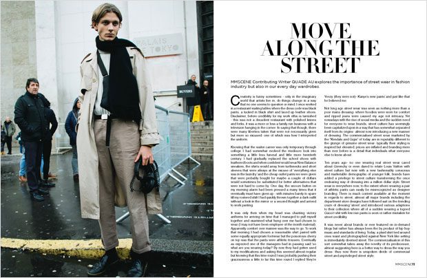 Elsewhere in the issue, our contributing writer Quade Au talks about the influence of sportswear in the fashion industry but also the way we got used to the athleisure in our every day lives in the Move Along The Street piece. While in the Italian Menswear Coming Out Of The Woodwork it was time for me to sum up the current state of menswear and the ever shorter Milano Moda Uomo, contradicting the importance of Made In Italy and the local sartorial craftsmanship in today’s industry. We are also back in Australia where our Contributing Photographer Pat Supsiri teamed up with the promising Ryan Frederick for an elegant new shoot, while the model up and comer also gave an exclusive interview.