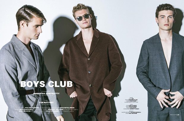 Models Chad White, O’Dane and Fraser at Elite Toronto, Martin Conte, Vasil Pimenov, Walter Fuentes, Layfayette Lemon, Shaun Balkum, Bradley Williams, Timusr Simakov, Golo Fischer, Otto and Friedrich at M4 Models, Justin at Izaio Models, Charlie Matthews, Dorien Olson, Wyatt Cooper, Gianna Noelle, Jonathan Normolle and Jalen Smith, Manny at Two Management, Danil Kudryavtsev.