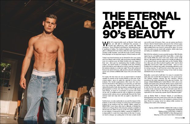 After a few months in the making we are happy to reveal MMSCENE Issue 018 featuring one of our all time favourite models, Mr CHAD WHITE on our cover. Chad who was photographed in New York by Kosmas Pavlos is an example of an unparalleled male model career, still going strong a decade later. One of our first online features of Chad dates back to 2007 and his runway walks for John Galliano and Jean Paul Gaultier in Paris, a runway scene changed beyond recognition since. The changes coming from Paris and influencing the whole fashion industry are reflected in the The Eternal Appeal of 90s beauty text, but we start our issue with the wonderfully penned Style Overtime by our contributing writer Quade Au.