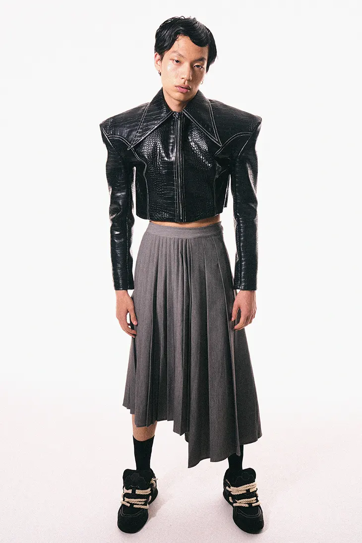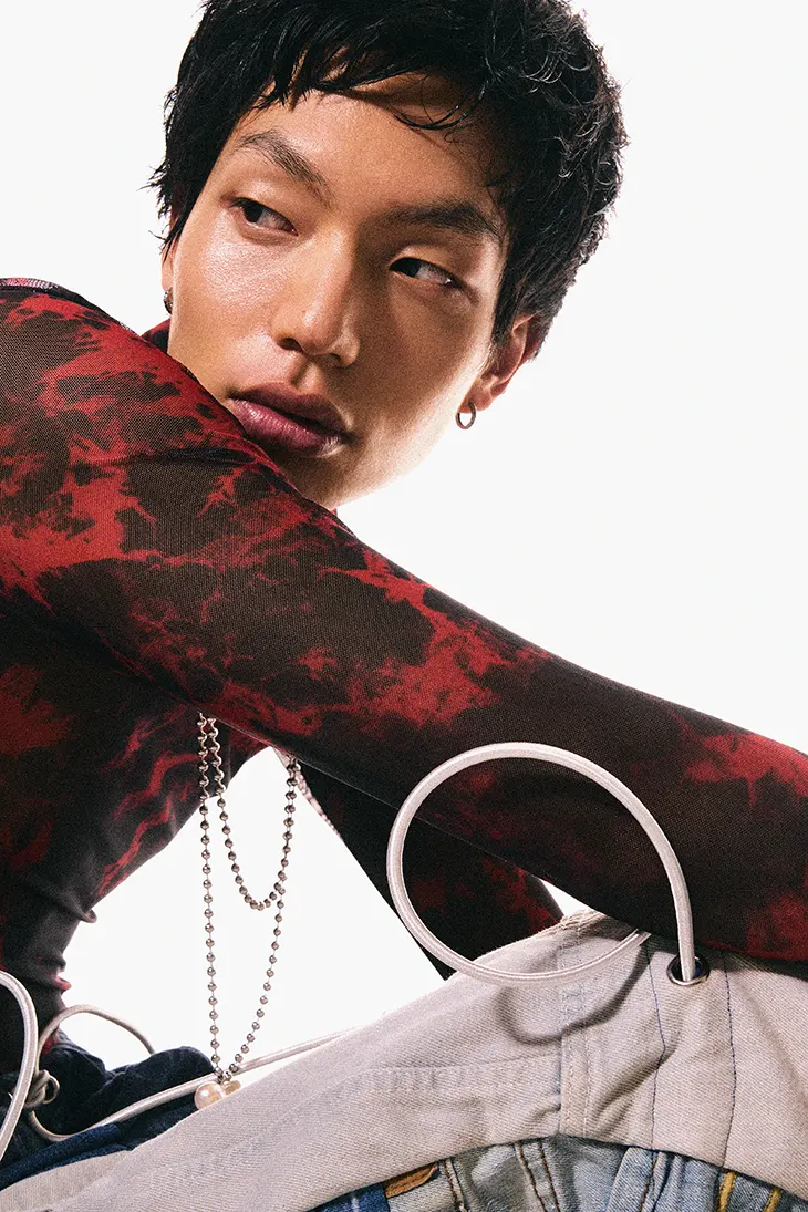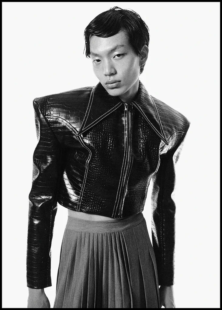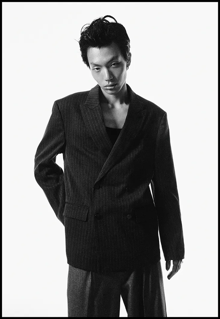 Model Donghee Jeong stars in Body Language, a new MMSCENE STYLE STORIES editorial photographed by Pieter de Jager, with styling by Anke Streicher. The studio setting stays pared back, placing full attention on the figure as light moves across the body in sharp, controlled passes. Donghee maintains a steady, composed stance throughout, letting subtle changes in posture and expression guide the sequence.