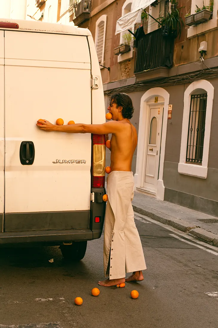 Styled by Sol Pardo, the story focuses on presence and awareness. Pyzynski and Camilleri carry the scene with quiet confidence, their gestures framed by the intimate streets of Barcelona. Explore the full Final Law of Vibration story with Tomas Pyzynski and Luciano Camilleri, photographed by Ángel Castellanos, for MMSCENE exclusive below.