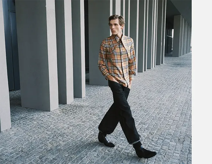 Shirt: Burberry & Vivienne Westwood – Courtesy of Contessa Miseria Archivio, Pants: MARTYRS, Coat: Zegna – Stylist’s own, Boots: Stylist’s own