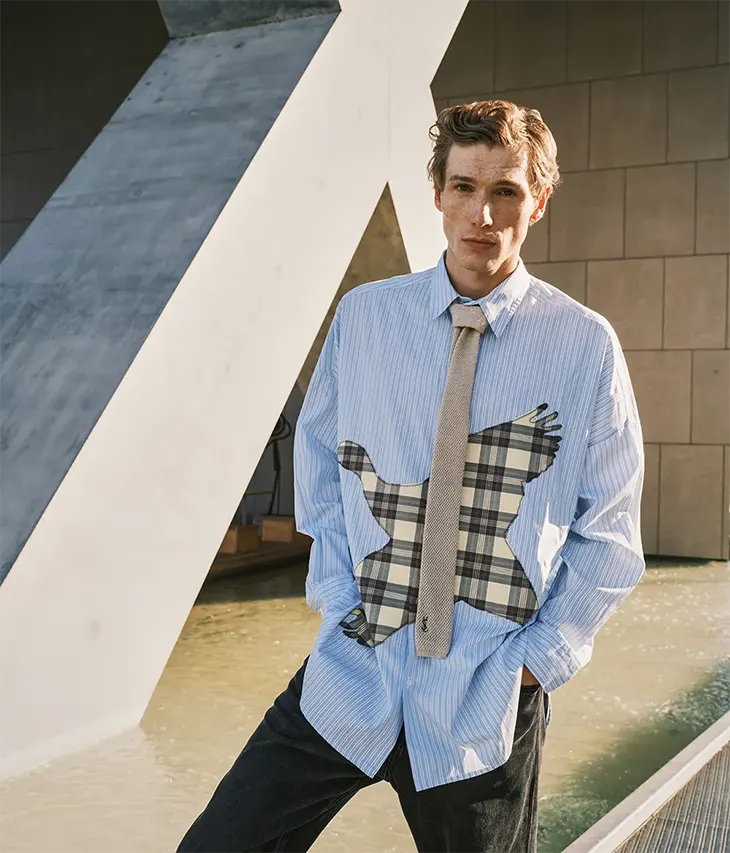 Shirt: Burberry & Vivienne Westwood – Courtesy of Contessa Miseria Archivio, Pants: MARTYRS, Coat: Zegna – Stylist’s own