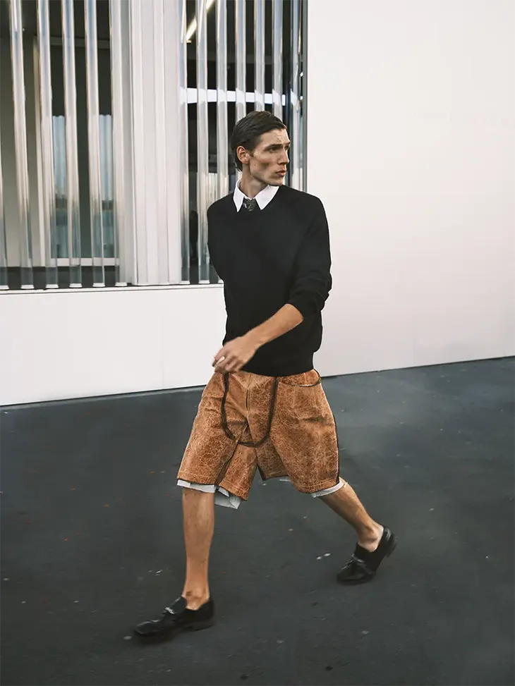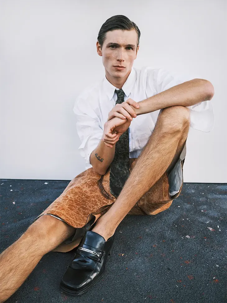 Shirt, Tie & Loafers: Stylist’s own, Shorts: MARTYRS