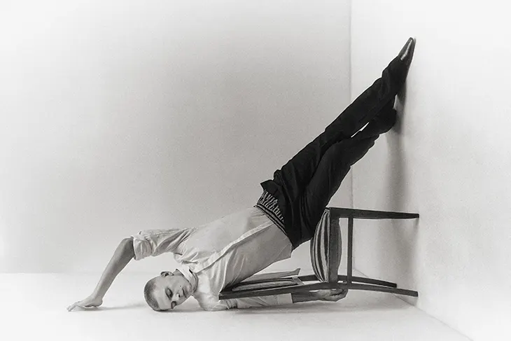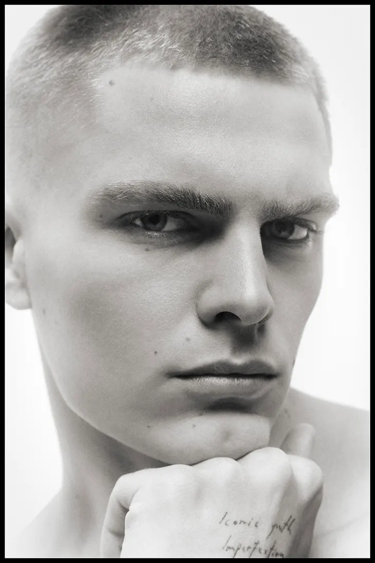 Youth Imperfection unfolds through a controlled series for MMSCENE STYLE STORIES, photographed by Veronica Nesci, with model Julian Elmenhorst at the center of each frame. Nesci keeps the space reduced, letting the body carry the image through controlled shifts in stance and expression.