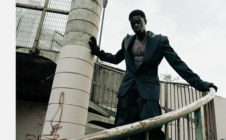 Stylist Anna Sarr defines the visual rhythm with looks that shift between softness and edge, working with pieces that respond to Genova’s textures. Makeup artist Michela Dragone and hair stylist Fujiwara Takahashi keep Ndiaye close to reality. Clothing throughout the story includes American Vintage, Timberland, Alchetipo, Stetson, Versace, MSCHF, Cortigiani, Moncler, Pierre Louis Mascia, Prada, Leonardo Valentini, Tod’s, Harmont & Blaine, Alessandro Enriquez, Bleue Burnham, Lauren Rubinski, and Darkai. Explore the full Borrowed Freedom story with Moussa Ndiaye for MMSCENE below: