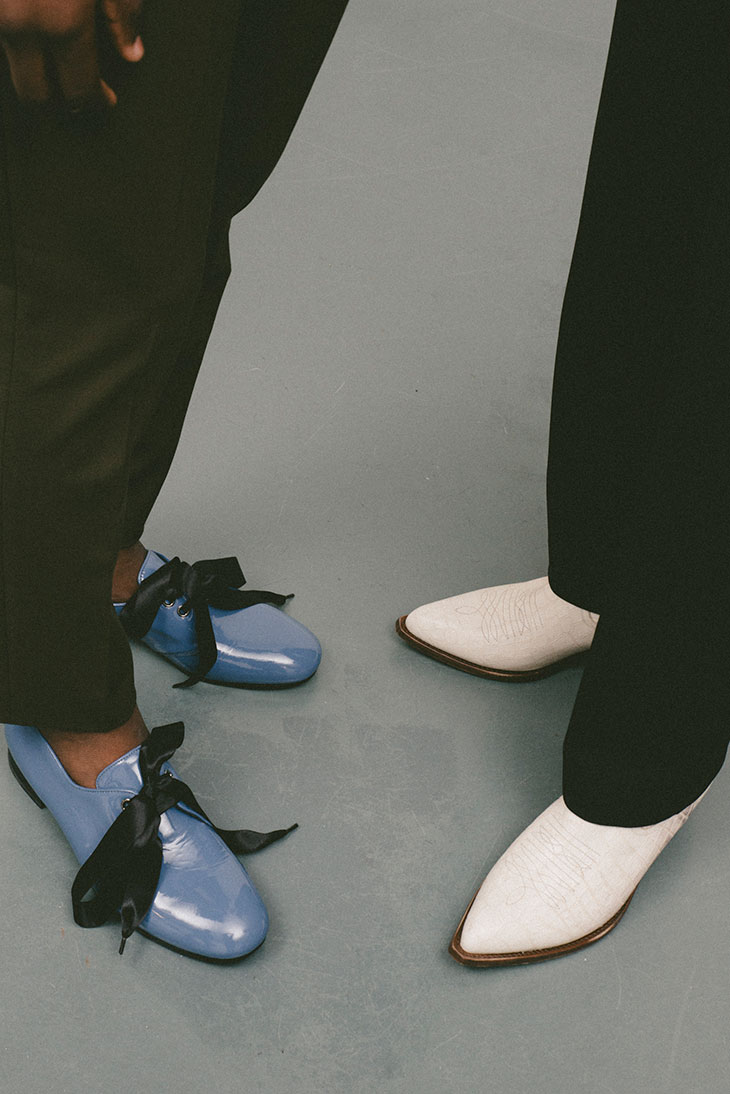 For this session, Pasquale and Elhadji are wearing selected pieces from Ferragamo, Antonio Marras, Neil Barrett, Premiata, Moschino, Kenzo, Canali, The Red Mannequin, Arlo Haisek Firenze, CDLP, Celine, Dolce & Gabbana, and Celine Homme.