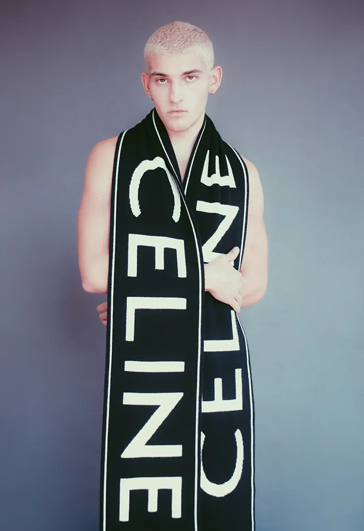 Sebastian wears a thoughtfully curated selection of pieces from brands including Celine, Zegna, Marine Serre, Bottega Veneta, Nidal Nouaihed, Calvin Klein, and Burberry.