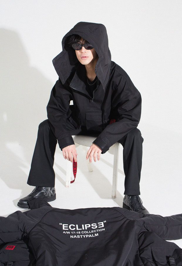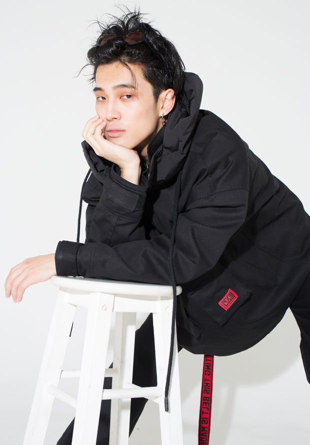 For the session Kosuke is wearing selected pieces from Korean brands Mythography and Nasty Palm.